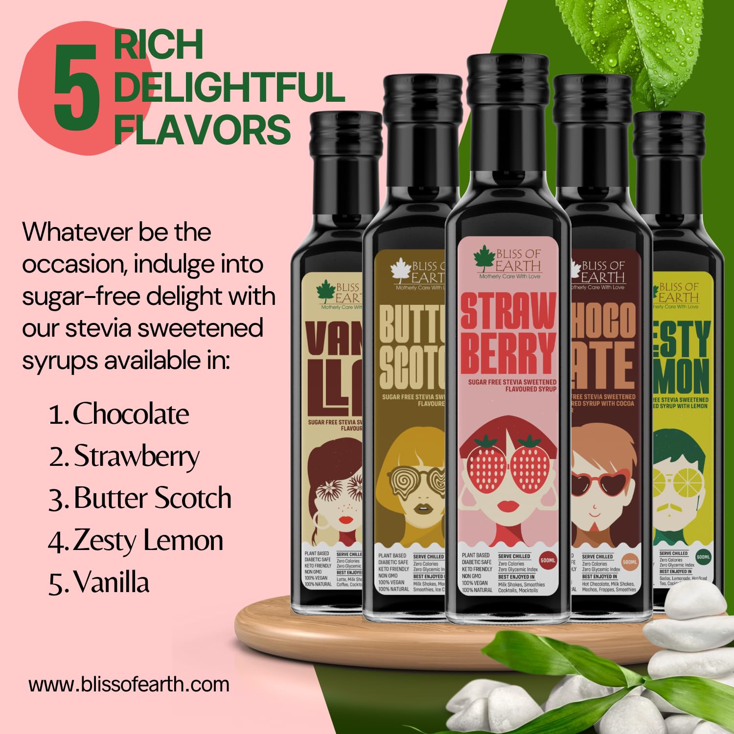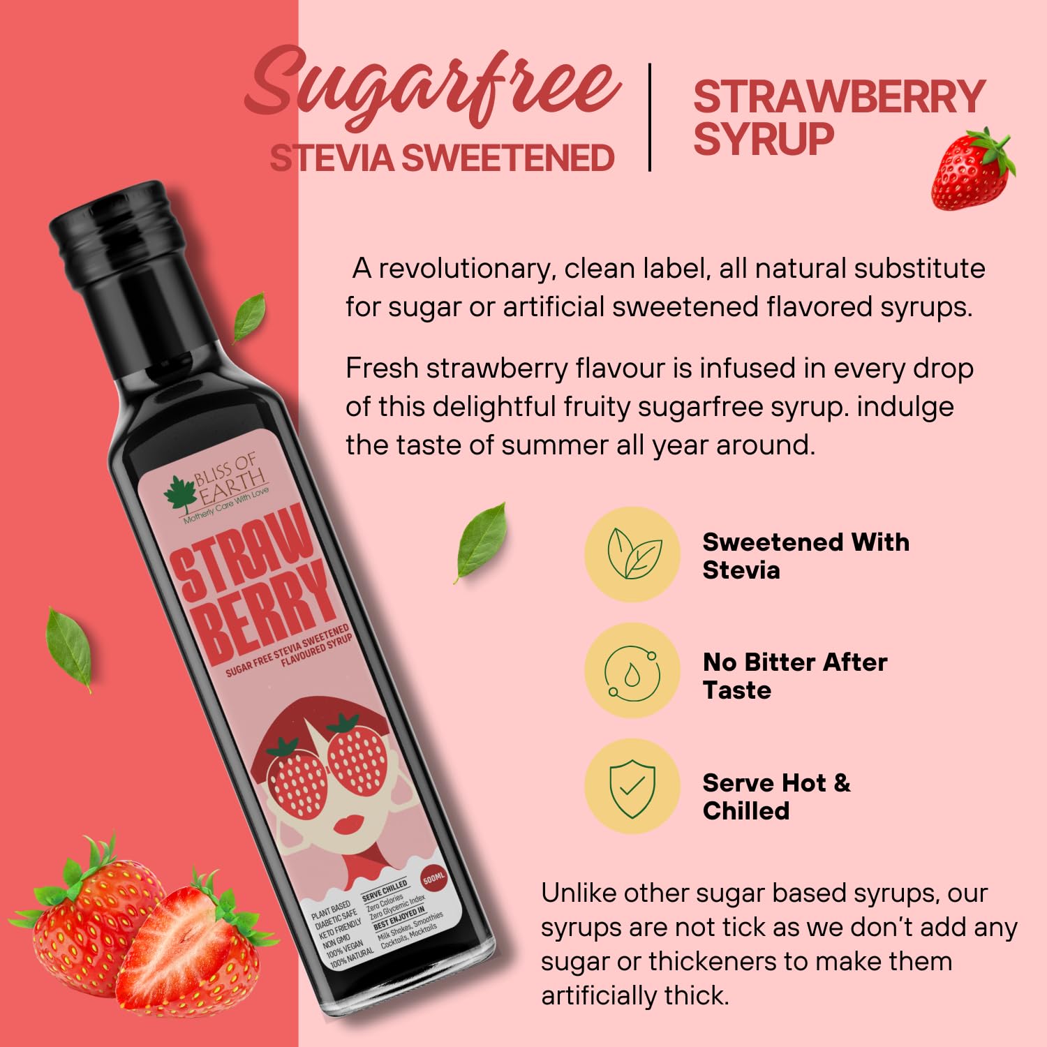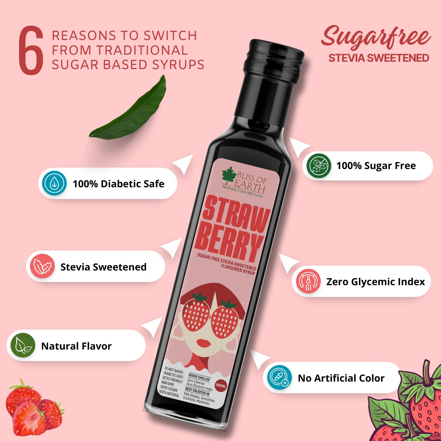 Bliss of Earth Strawberry Sugar free Syrup For Strawberry Shake Lassi Mocktail Diabetic Safe Zero Calorie Keto. No Artificial Flavour. 500ml