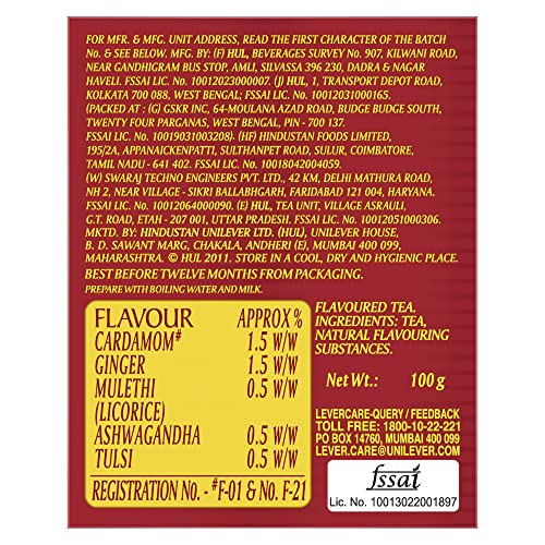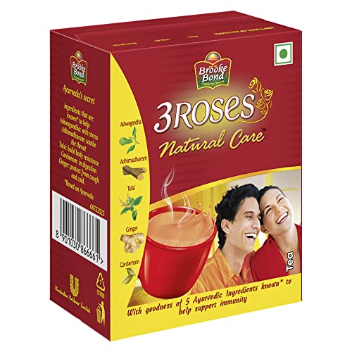 Brooke Bond Red Label Ginger, Brooke Bond 3 Roses Natural Care Tea, With 5 Ayurvedic Ingredients, 100 Gram, Powder