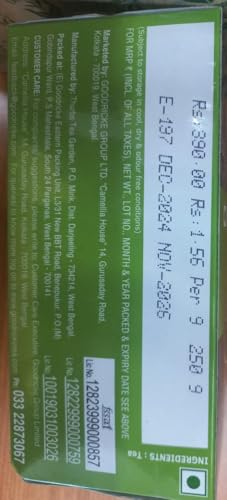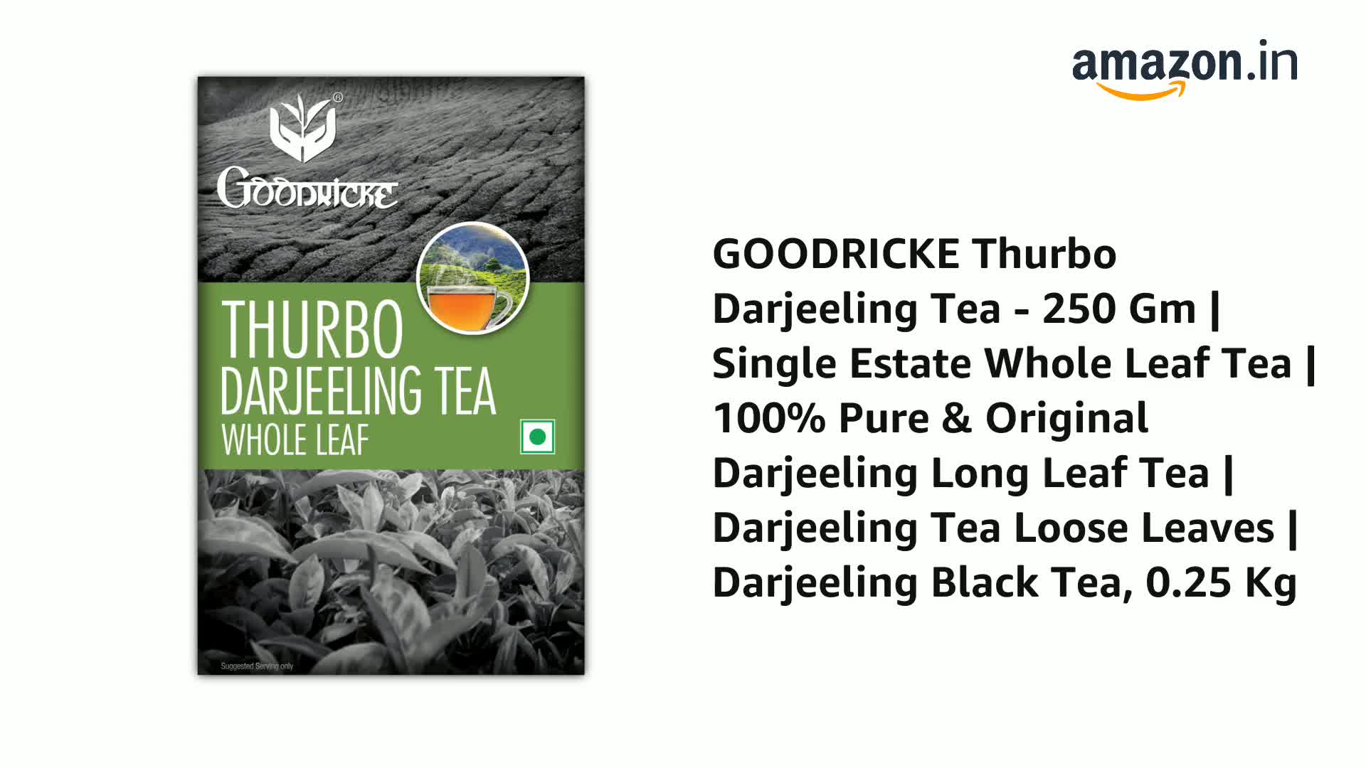 HomeGroceryBeveragesTeaGOODRICKE Thurbo Darjeeling Tea - 250Gm(Pack Of 1)| 100% Pure & Original Single Estate Whole Leaf Tea | Premium Black Long Loose Tea Leaves With Rich Taste