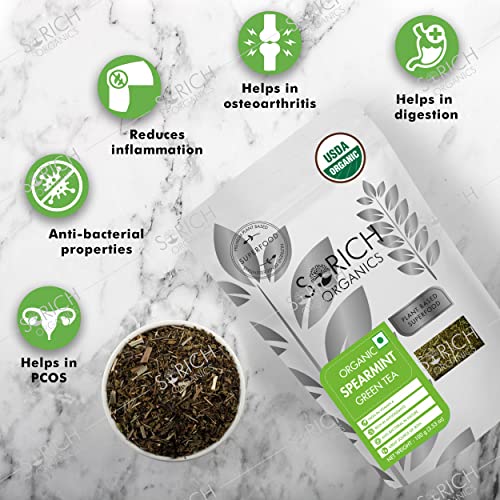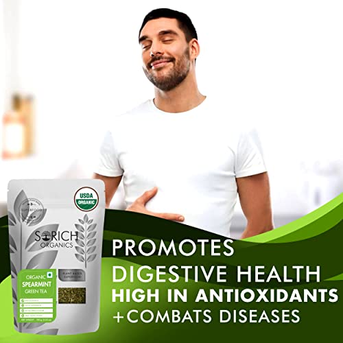 Sorich Organics Spearmint Green Tea 100gm | Green Tea for Management | Spearmint Green Tea for PCOS PCOD | Green Tea Loose Leaves | AntiRich | Helps in Hormonal Balance