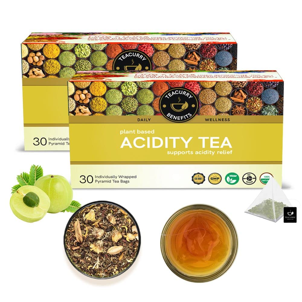 TEACURRY Acidity Tea (2 Month Pack | 60 Tea Bags) - Supports Stomach Acidity & Digestion Naturally | Organic Tea With - Anantmool, Guduchi, Bala, coriander seed