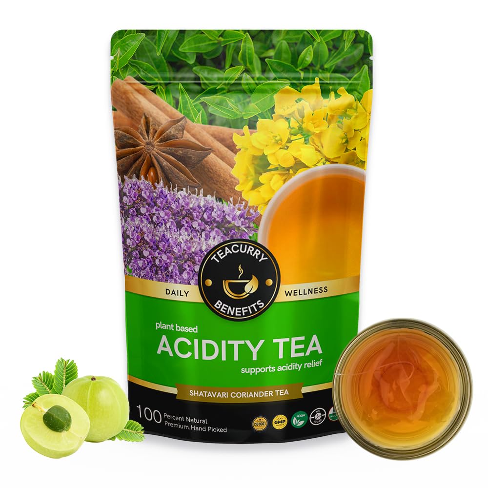 TEACURRY Acidity Tea (1 Month Pack | 30 Tea Bags) - Supports Stomach Acidity & Naturally | Organic T