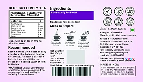 TEACURRY Blue Tea 60 Tea Bags - Helps in Skin Glow Hair Growth Eyesight Mood Enhance | Vegan | Impor