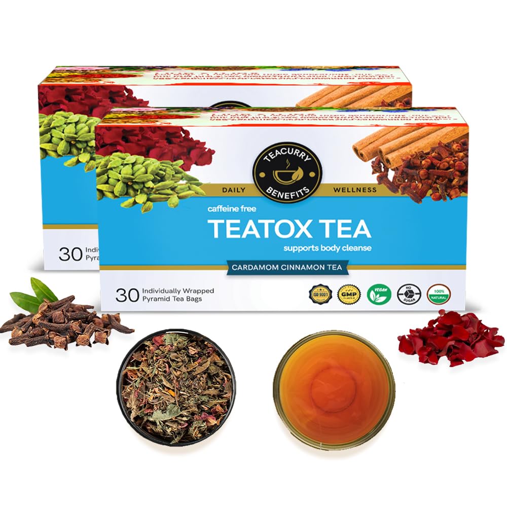 TEACURRY Cleanse Combo Green Tea (2 Months Pack, 60 Tea Bags) - Helps with Intestinal Health, Liver Cleanse, Metabolism - Green Tea Bags - Wellness Tea Powder
