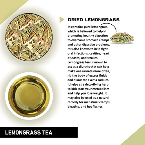 TEACURRY Lemongrass Tea (200 Grams, 400 Cups) - Helps with Inflammation, Digestion, Pressure - Cambodian Lemongrass