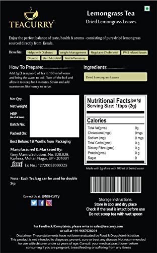 Deliciously Healthy Lemongrass Tea Teacurry Lemongrass tea is designed to fuel your body with ingredients that help support not only everyday needs but also illness based needs