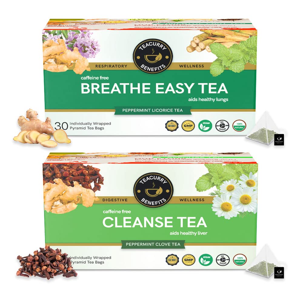 TEACURRY Lung Cleanse and Liver Cleanse Tea Combo (1 Month Box | 30 + 30 Teabags) - support to quit Smoking and Drinking Alcohol