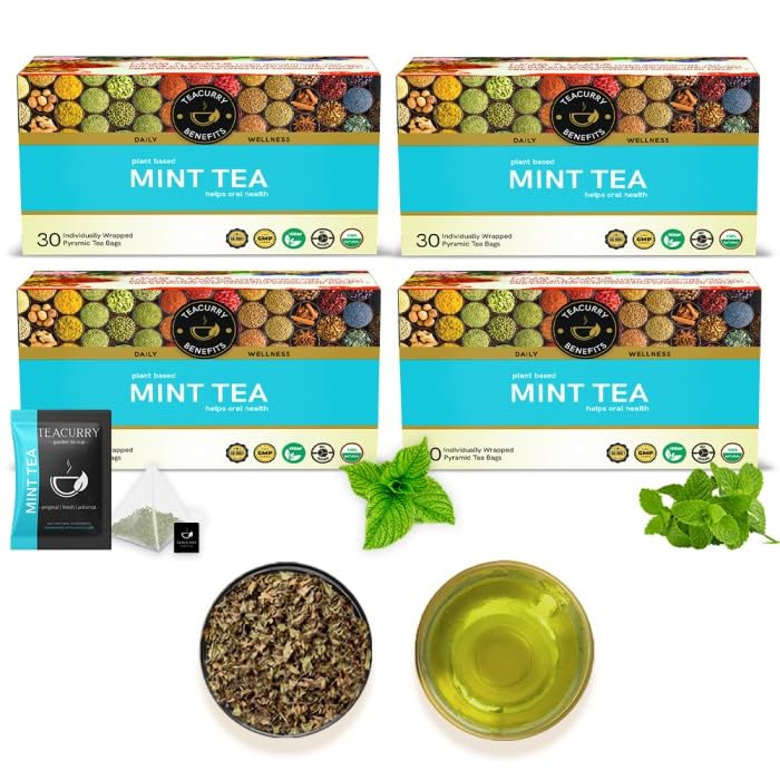 TEACURRY Mint Leaves Tea (120 Tea Bags 4 Months Pack) - Improves Support in Bad Breath Soothes Stoma