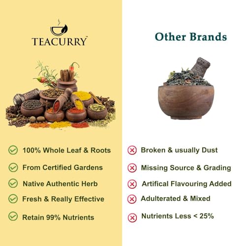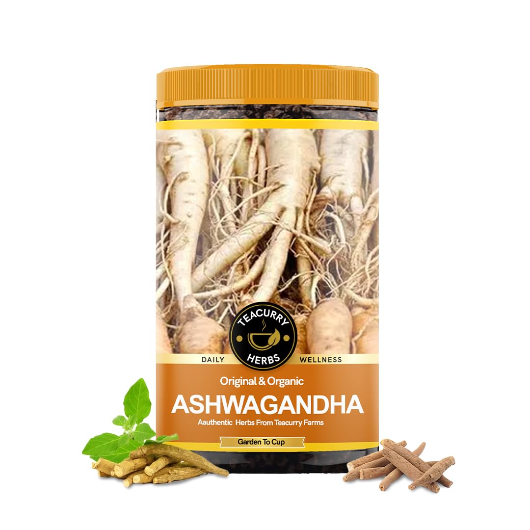Teacurry Organic Ashwagandha Root (100 Gram) - Boost Internal Wellness and Muscle Strength Balance Level of Sugar & Overall Well Being - Raw Organic Ashwagandha Roots