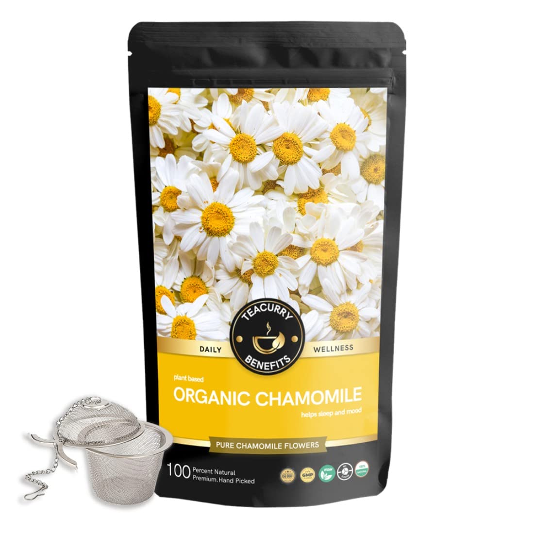 TEACURRY Organic Chamomile Tea (15 Days Pack | 50 Grams + Infuser) - Tea and Calming Tisane