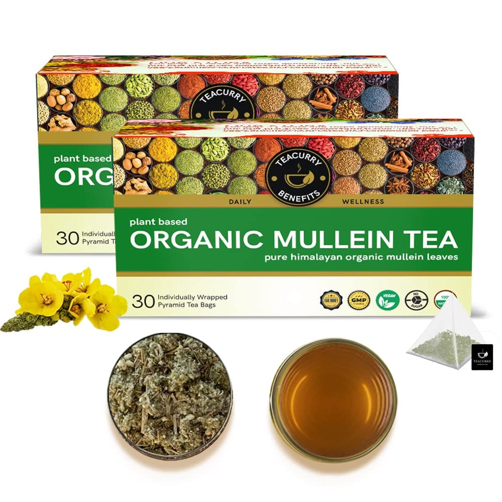 TEACURRY Organic Mullein Tea - (2 Month Pack 60 Tea Bag) - Helps in Lung and skin problems | Natural
