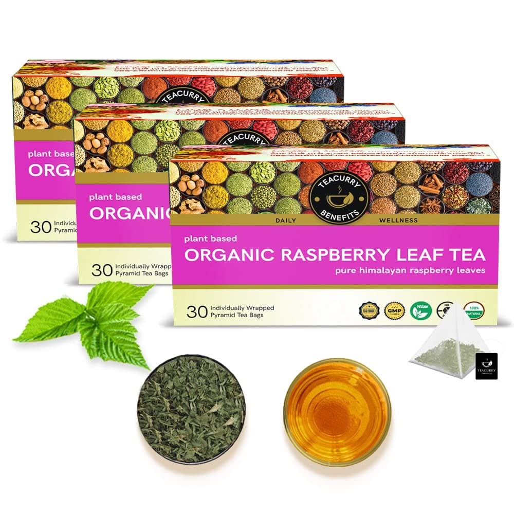 Teacurry Organic Raspberry Tea (3 Month Pack, 90 Tea Bags) Helps With Women Health | Organic Raspberyy Leaf Tea | Organic Raspberry