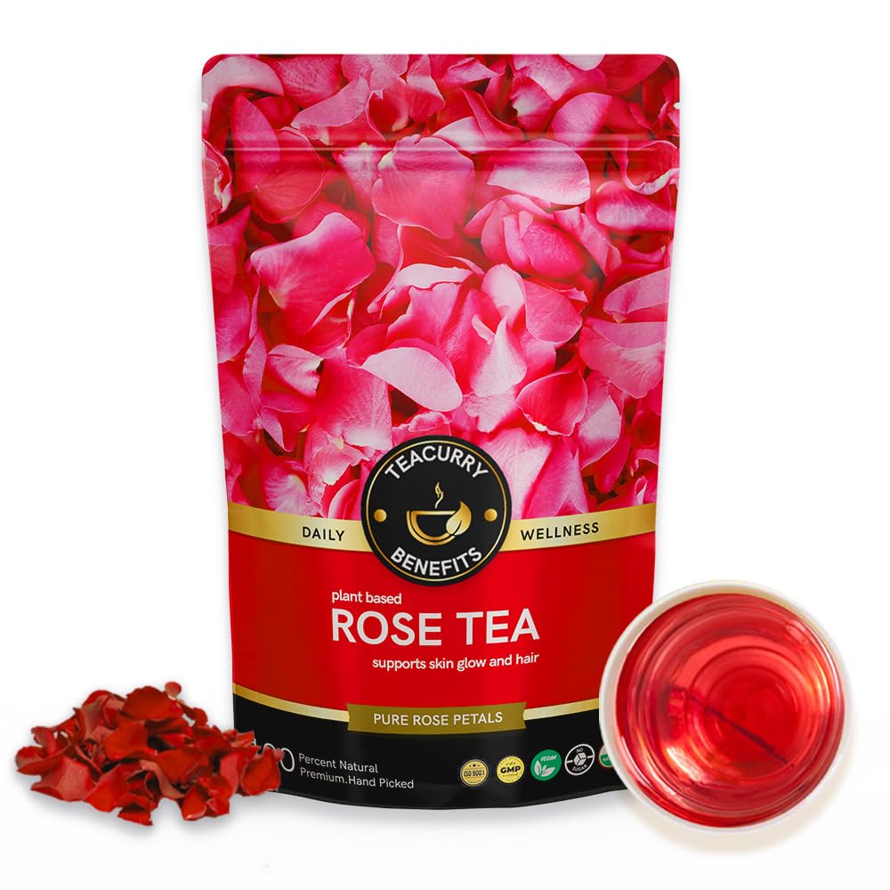 TEACURRY Rose Petal Tea Organic - 50 Gms Rose Tea Leaves | Rose Petal Tea Helps Lose Weight, Boosts Digestion, Relieves Anxiety, Increases Skin Glow | Rose Tea Drink