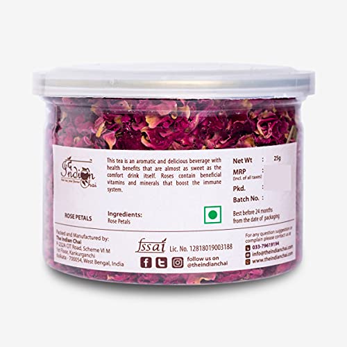 The Indian Chai - Rose Tea, Gulab Patti, Full of Vitamins, Relieves Stress & Anxiety, Herbal Tea, Rose Petals 25 grams