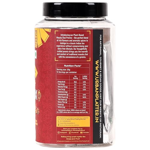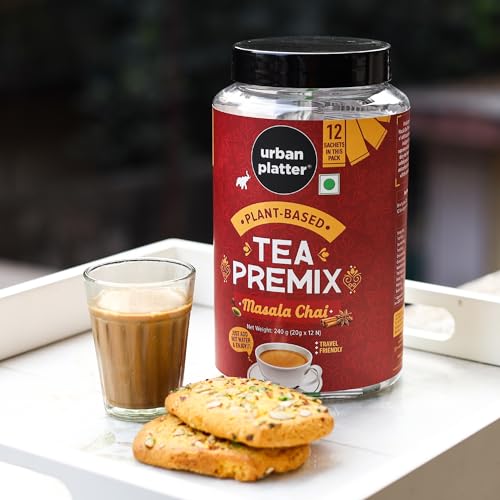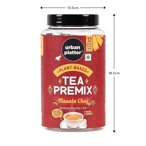 Urban Platter Vegan Tea Premix Sachets, Masala Chai, 200g / 7oz [Just Add Water, 12 Sachets, Dairy-Free Instant Tea]