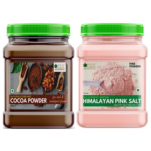 Bliss of Earth Combo of Naturally Organic Dark Cocoa Powder (500gm) for Chocolate Cake Making and Fine Powder (1kg) Pakistani Himalayan Pink Salt Non Iodised for Weight Loss & Healthy Cooking