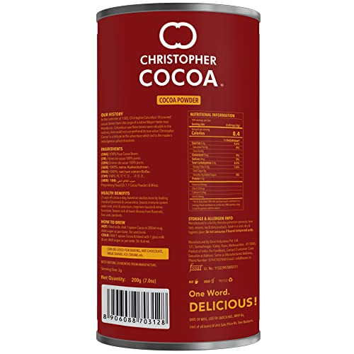 Christopher Cocoa, Natural Cocoa Powder, Unsweetend (Bake, Cake, Hot Chocolate, Drinking Shakes), 200g
