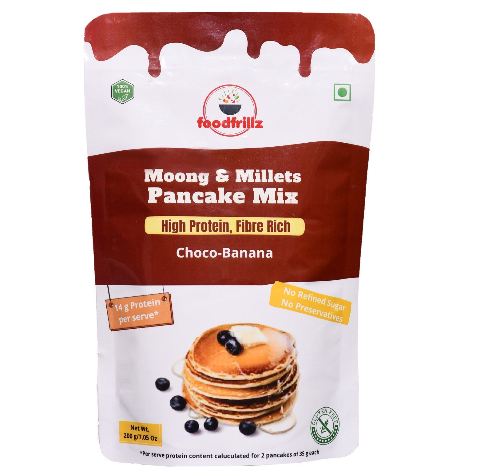 Foodfrillz: Delicious Millet Pancake Mix-Banana Chocolate Flavour Natural High Protein with Sprouted Moong Beans 200 g