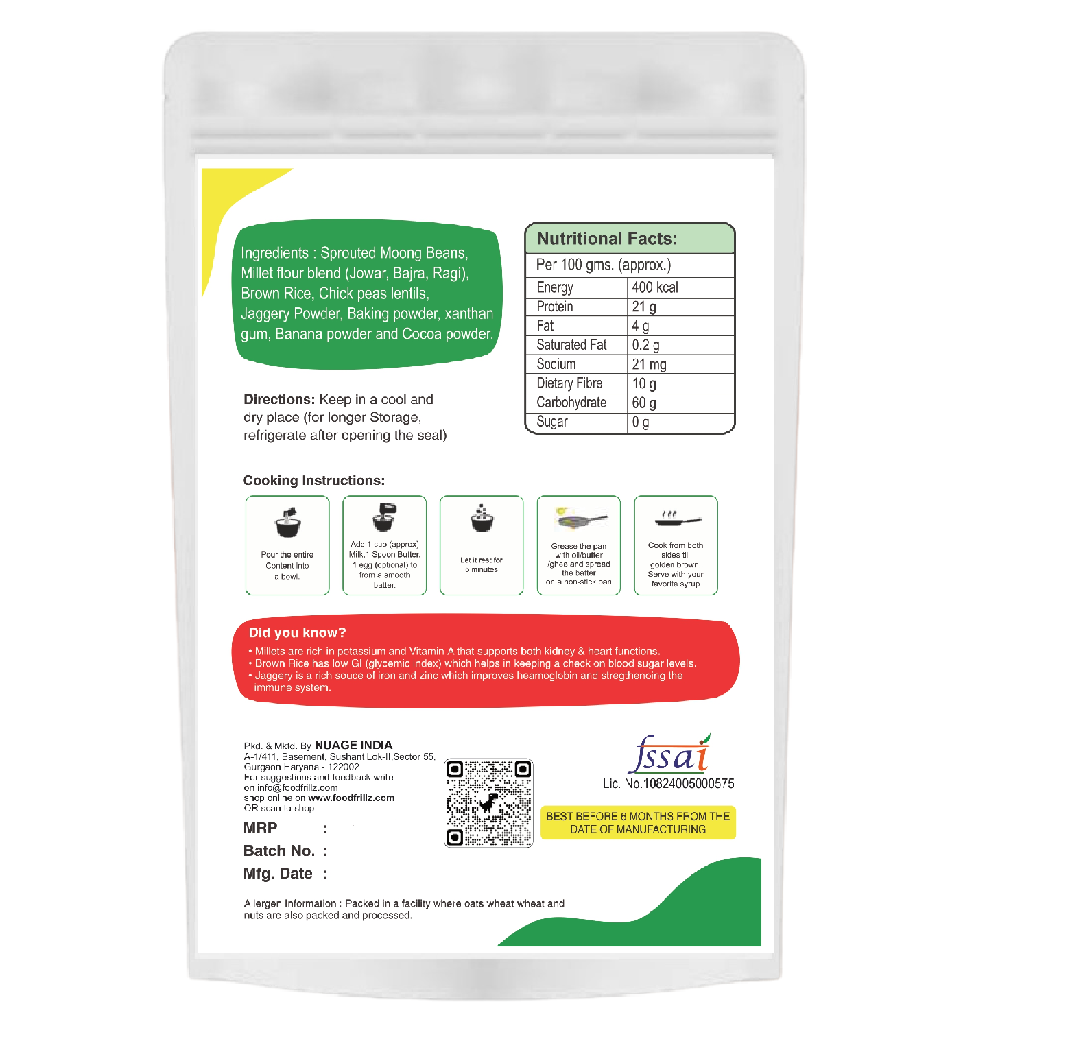 HomeGroceryCookingBaking SuppliesBaking MixesFoodfrillz Millet Delectable Delights: The Perfect Pancake Mix-Banana Vanilla And Choco Flavour Healthy Natural High Protein with Sprouted Moong Beans Pack Of 2