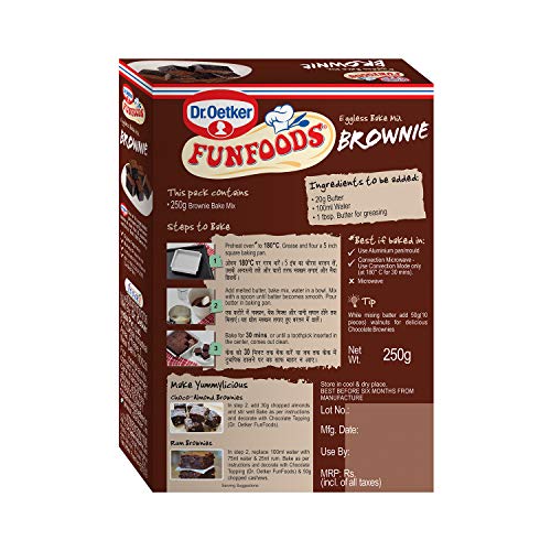 Dr. Oetker FunFoods Eggless Bake Mix Brownie, 250 Gram, Chocolate Brownie