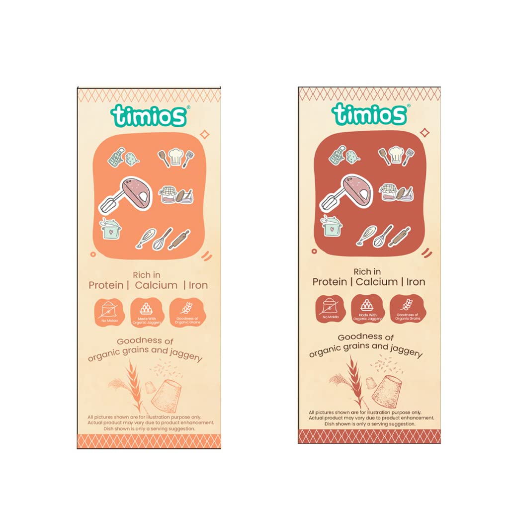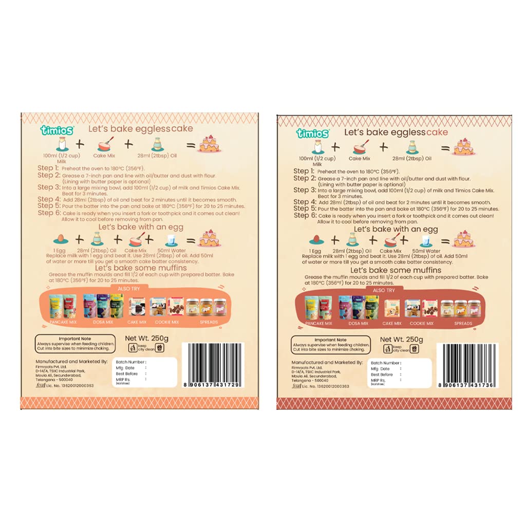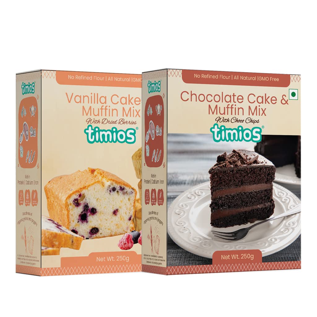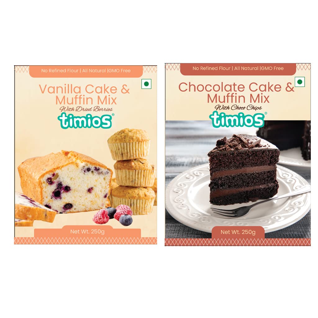 Timios Multigrain Eggless Instant Vanilla & Chocolate Cake Mix | No Maida | Sweetened with Jaggery | Rich In ProteinIron & Calcium | Pack of 2 | 250g Each