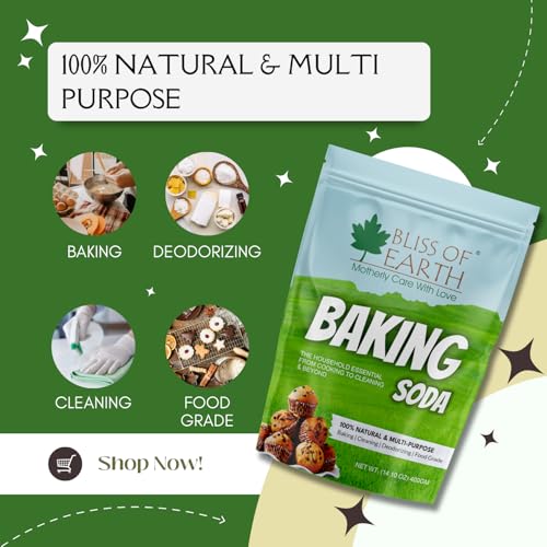 HomeGroceryCookingBaking SuppliesBaking SodasBliss of Earth Baking Soda For Food & Cleaning Purpose, 400gm, Pure Sodium Bicarbonate for Baking, Cleaning, and Deodorizing, Food Grade, Non-GMO, Eco-Friendly