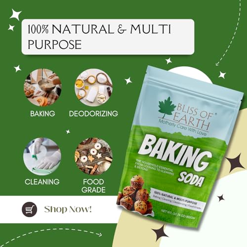 HomeGroceryCookingBaking SuppliesBaking SodasBliss of Earth Baking Soda for Cooking, Baking Soda for Food & Cleaning Purpose, 900gm, Pure Sodium Bicarbonate for Baking, Cleaning, and Deodorizing, Food Grade, Non-GMO, Eco-Friendly