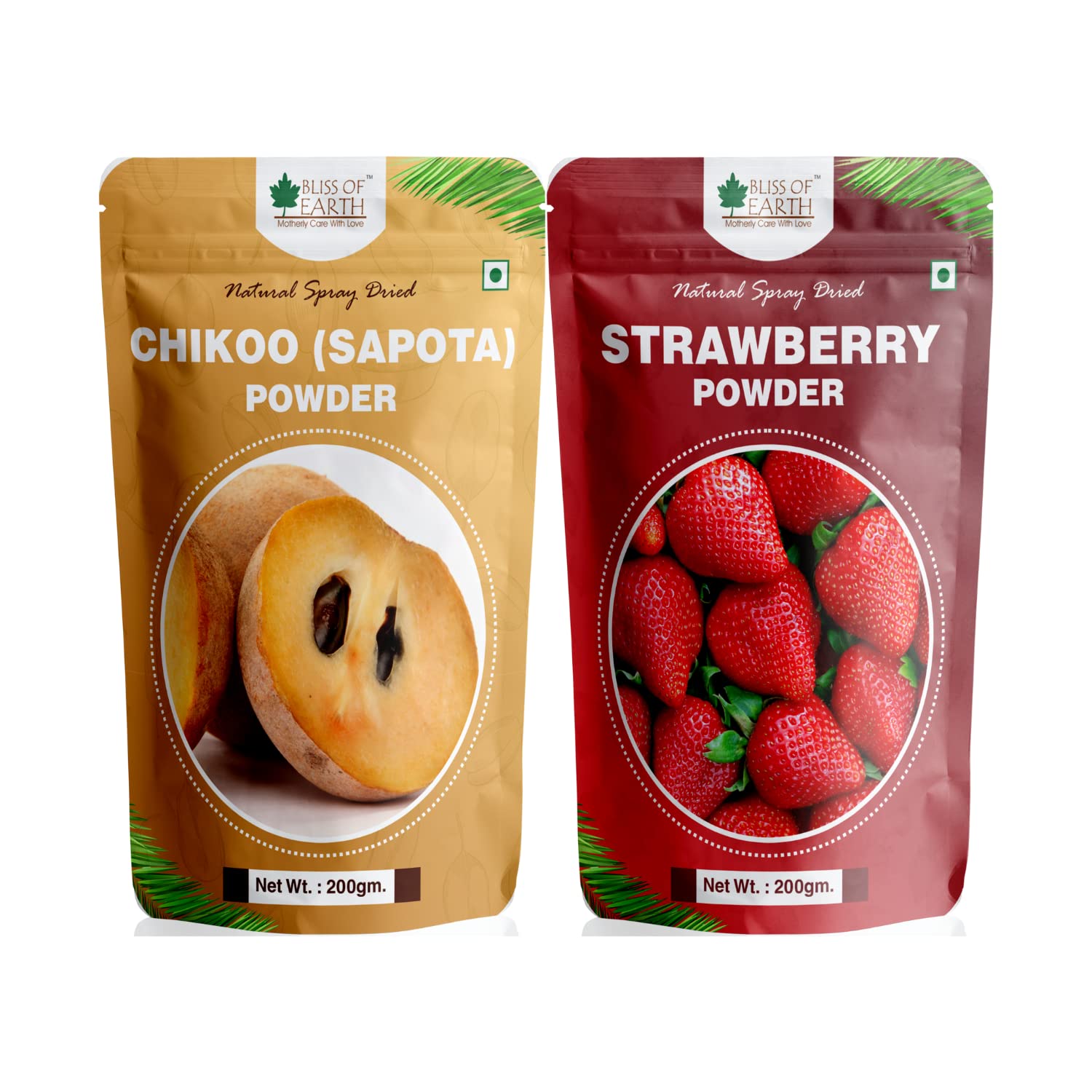 Bliss of Earth 200gm Chikoo (Sapota) Powder+ 200gm Strawberry Powder Natural Spray Dried
