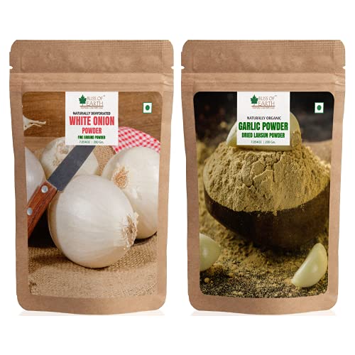 Bliss Of Earth Combo Of Natural White Onion Powder And Organic Garlic Powder Dried For Cooking (Pack Of 2x200gm)