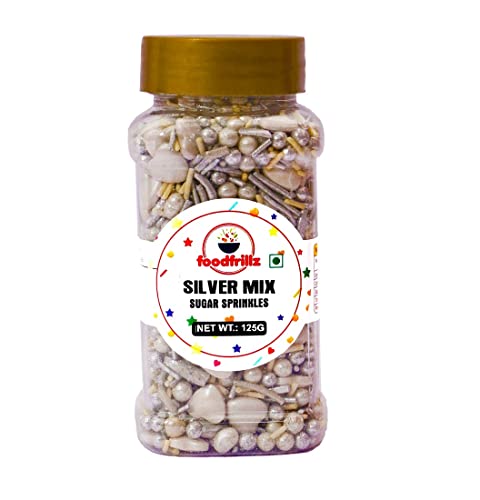 foodfrillz Silver Mix Sprinkles for Cake Decoration 125 g