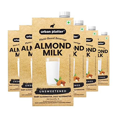 Urban Platter Unsweetened Almond Milk 1 Litre [Pack of 6 Barista-Grade Lactose-Free Plant-Based / Vegan Milk Alternative]