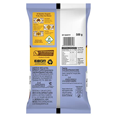 24 Mantra Organic Ragi Flour/Finger Millet/Nachni Flour - Chemical Free & Pesticides Free | Naturally Gluten-Free (500 G (Pack Of 1))