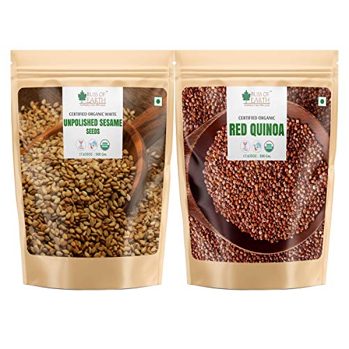 Bliss of Earth USDA Combo of Organic Red Quinoa and Unpolished White Sesame Seed for Weight Loss Raw Super Food Pack of 2 (2x500gm)
