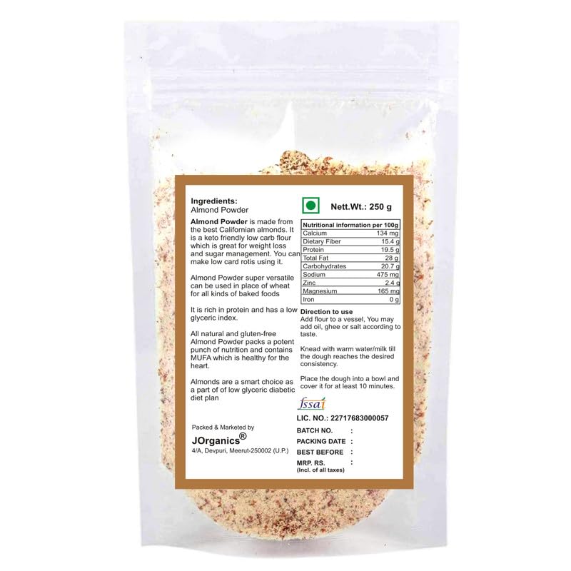JOrganics Almond Flour Keto Un-blanched Almond Powder Low Carb - Gluten-Free 250 gram
