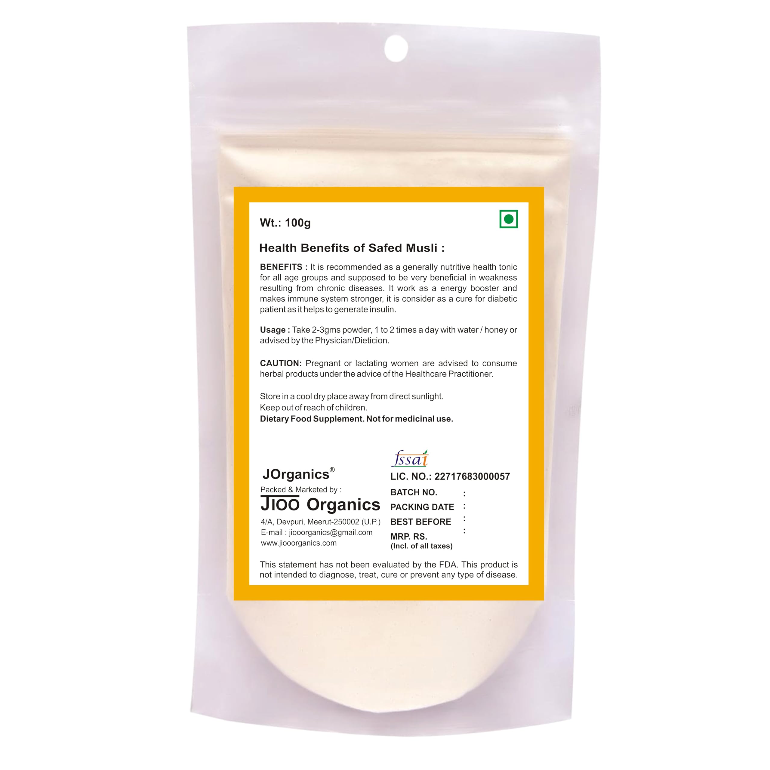JOrganics Safed Musli Powder | Chlorophytum Borivilianum | Root Powder | Siva Musli Podi/Shweta Musli Hudi | for Vitality & Performance | Strength & Stamina Booster | Ayurvedic Herbs - 100gram