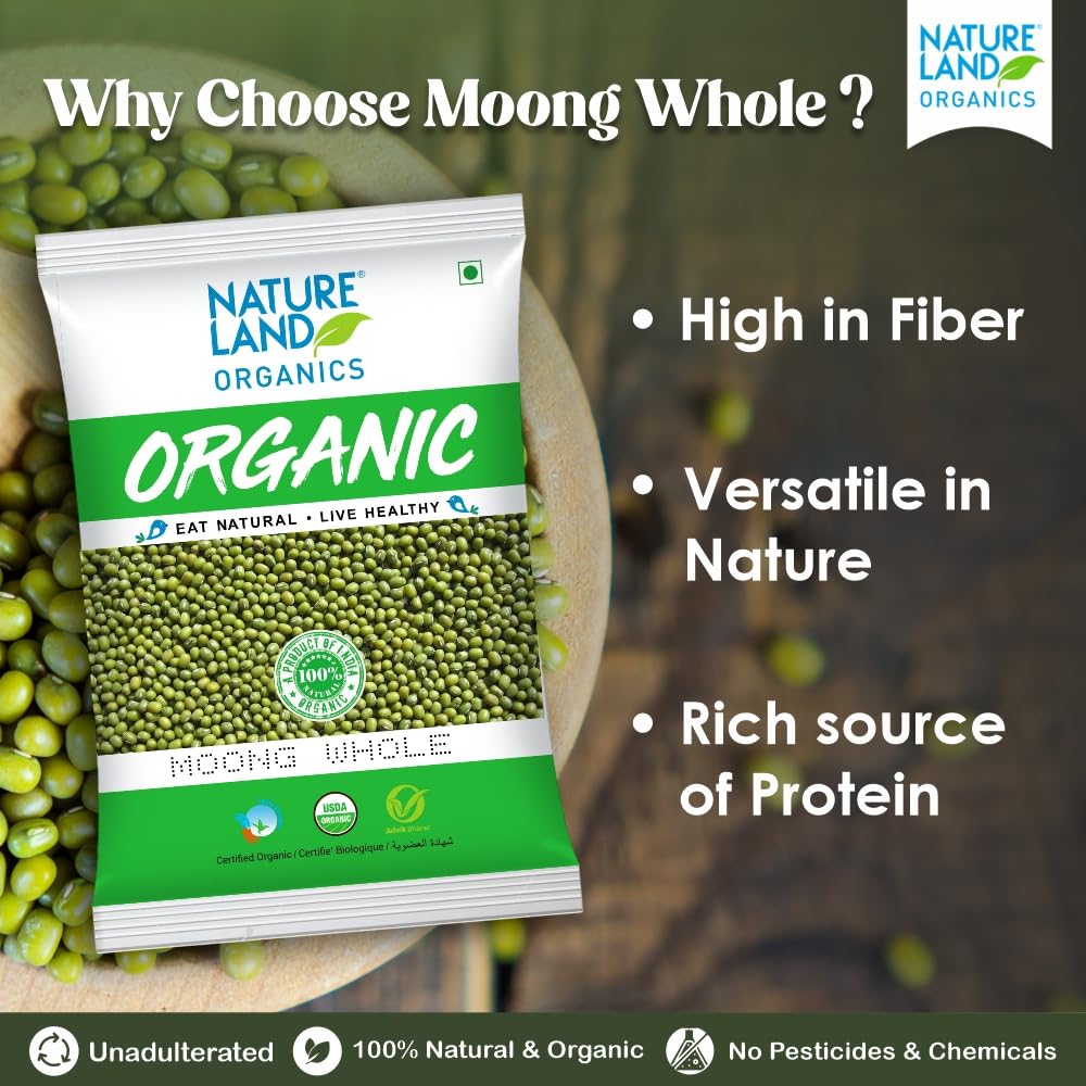 Natureland Organics Moong Sabut/Whole Daal 500 Gm (pack of 3) - Organic Pulses