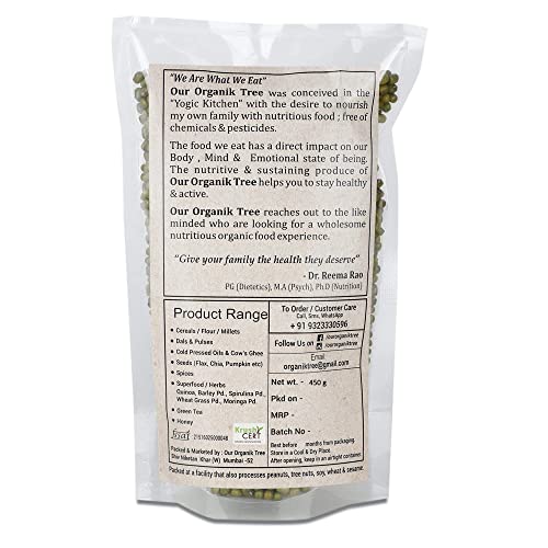Our Organik Tree Certified Organic Whole Green Moong | Sabut | Saboot | Hara Moong | No Gmo | Healthy Pulses 450gm