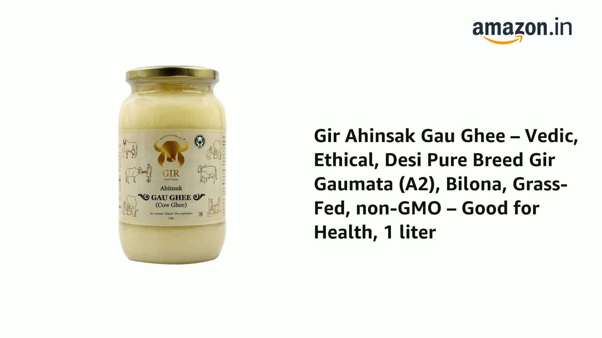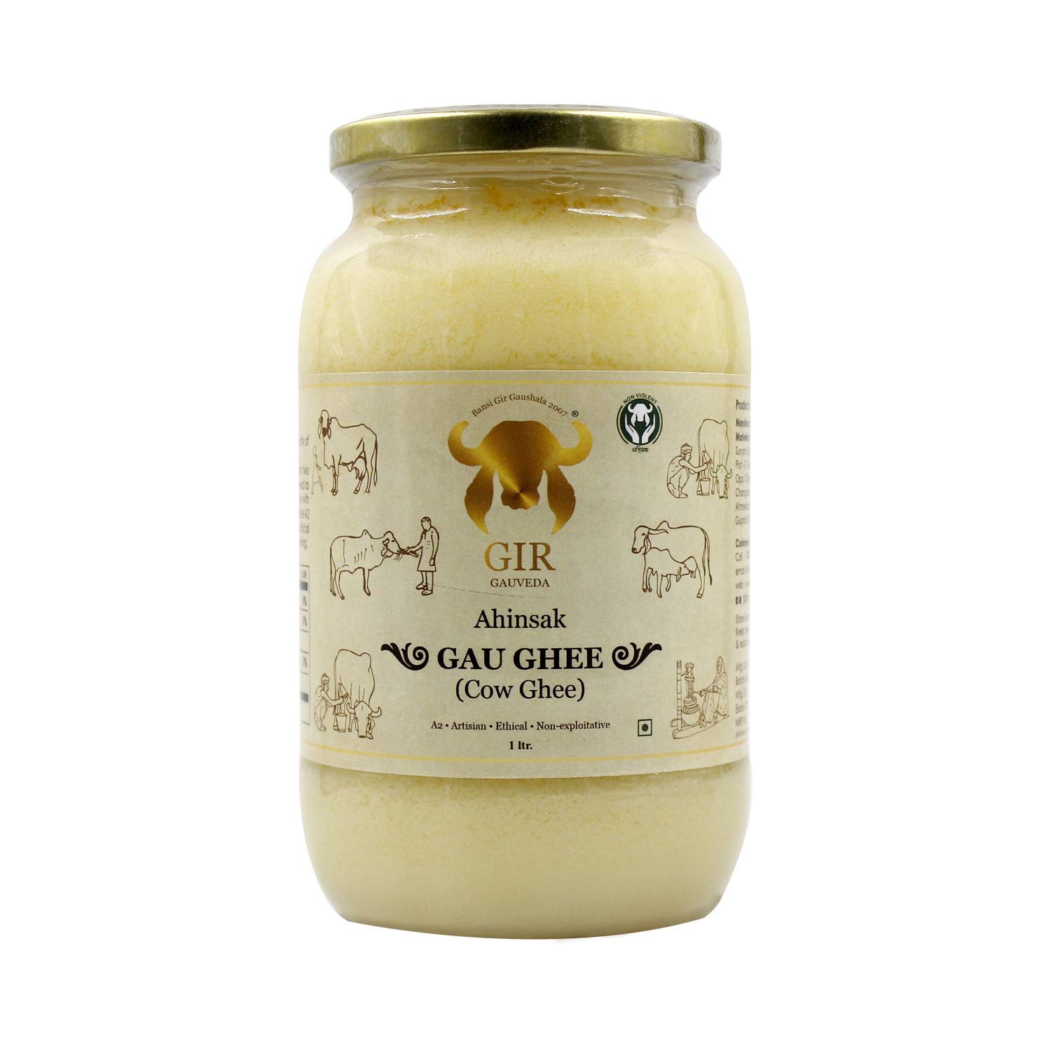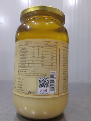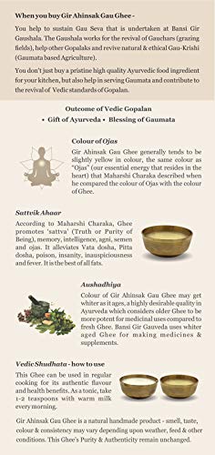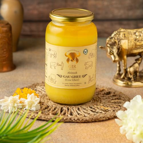 GIR Ahinsak Gau Ghee Vedic, Ethical, Desi Pure Breed Gaumata (A2), Bilona, Grass-Fed, Non-Gmo Good For Health, 1 Liter