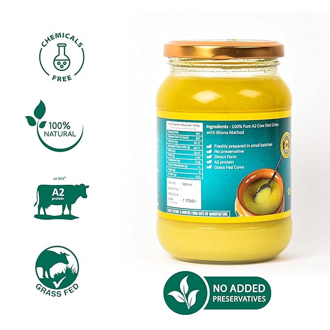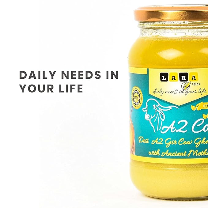 HomeGroceryCookingA2 Cow GheeLARA tales A2 desi Pure Cow Ghee | 100% Natural Organic Handmade Ghee | Made by Ancient Bilona Method Gir Cow Milk | Best Source for Nutritive Fatty Acids | Natural Taste | No Additives - 500ml