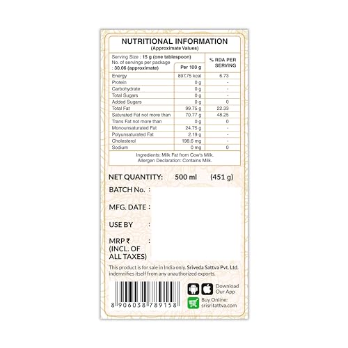 NO PRESERVATIVES NON-GMO: We never compromise on the quality purity and taste of our ghee. Our premium cow's ghee is FSSAI certified which makes it safe for your consumption.