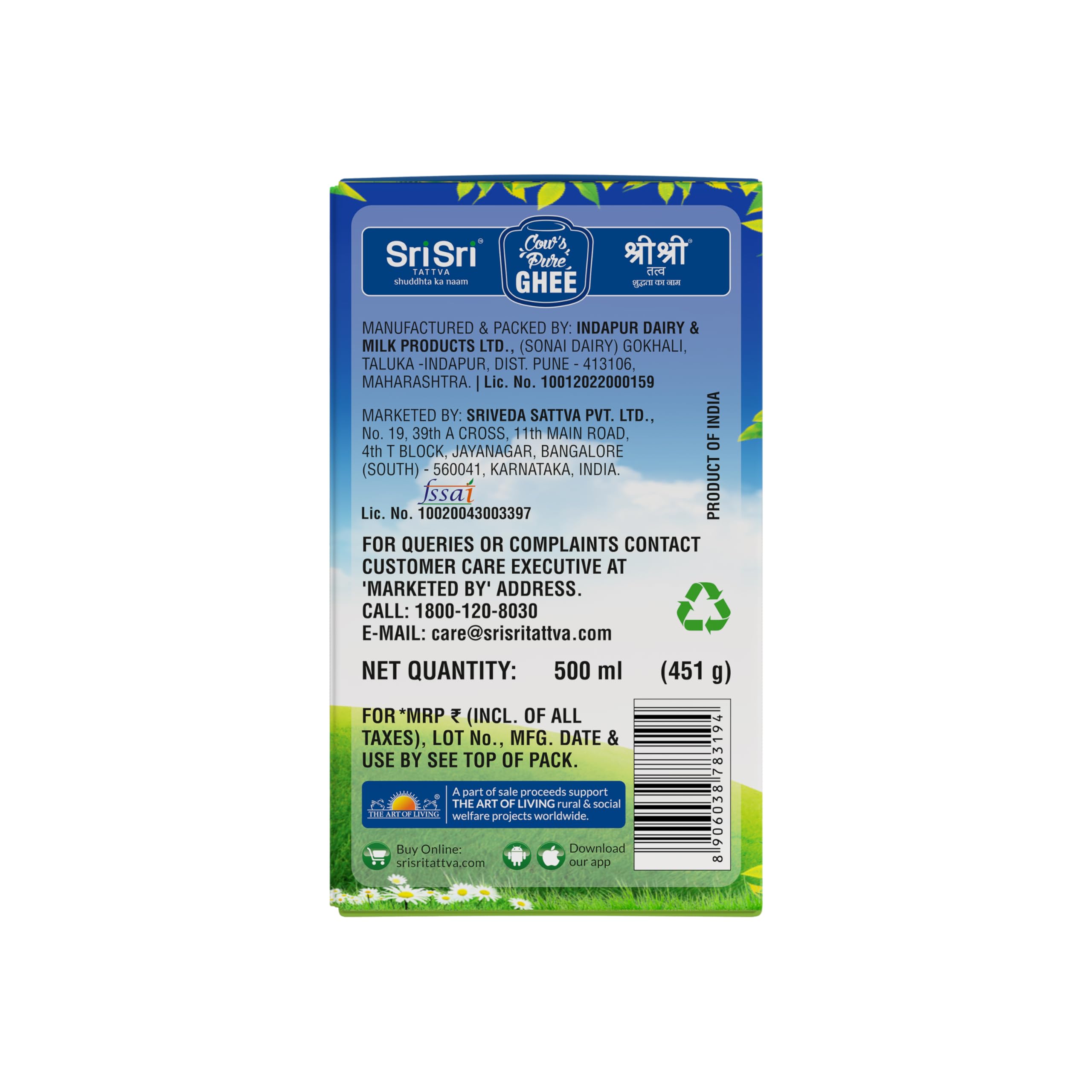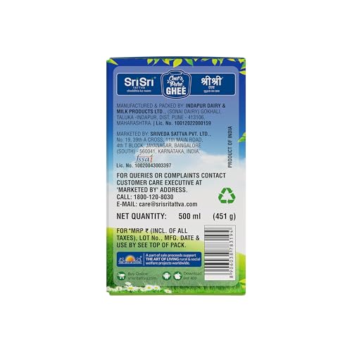 Sri Sri TATTVA shuddhta ka naam Cow Ghee - 500ml (Pack of 2) - Pure Cow Ghee for Better Digestion and Immunity
