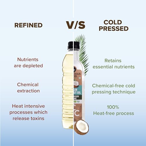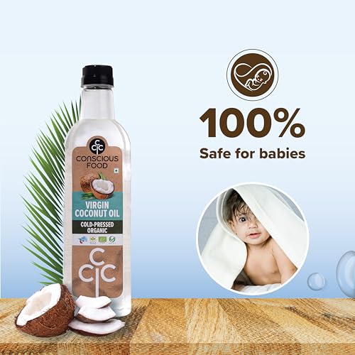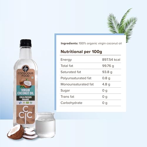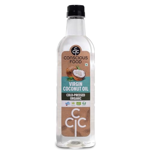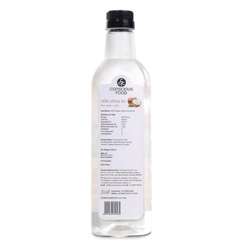 Conscious Food Organic Cold Pressed Virgin Coconut Oil in Pet Bottle | Boosts Heart Health, Good for Skin Care | Pure Coconut Oil - 500ml