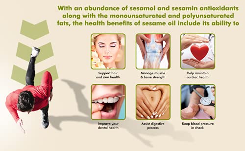 The health benefits of Sesame oil include its ability to improve hair and skin health stimulate strong bone growth help maintain good heart health protect infant health boost your dental health improve the digestive process and lower inflammation check BP