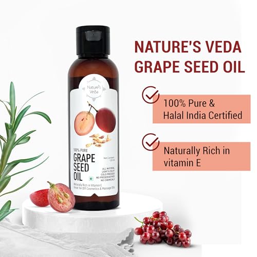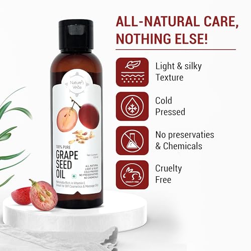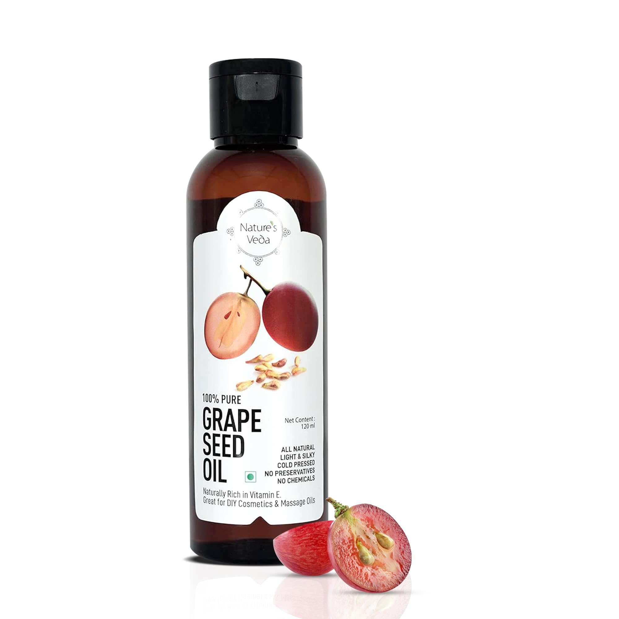 Nature's Veda Grape Seed Oil For Skin Tightening | Acne & Hair Growth | Cold Pressed | No Preservatives(120 Ml)