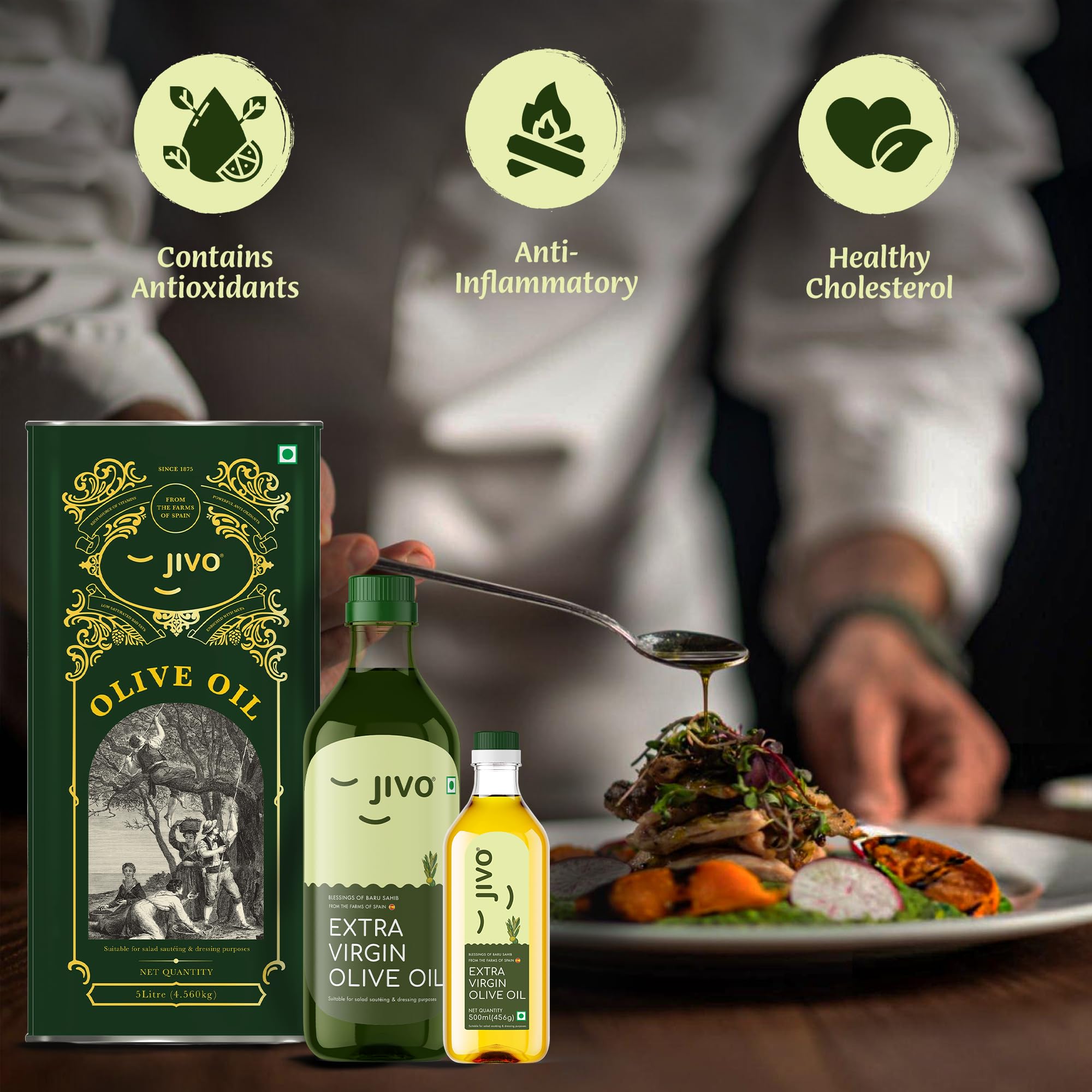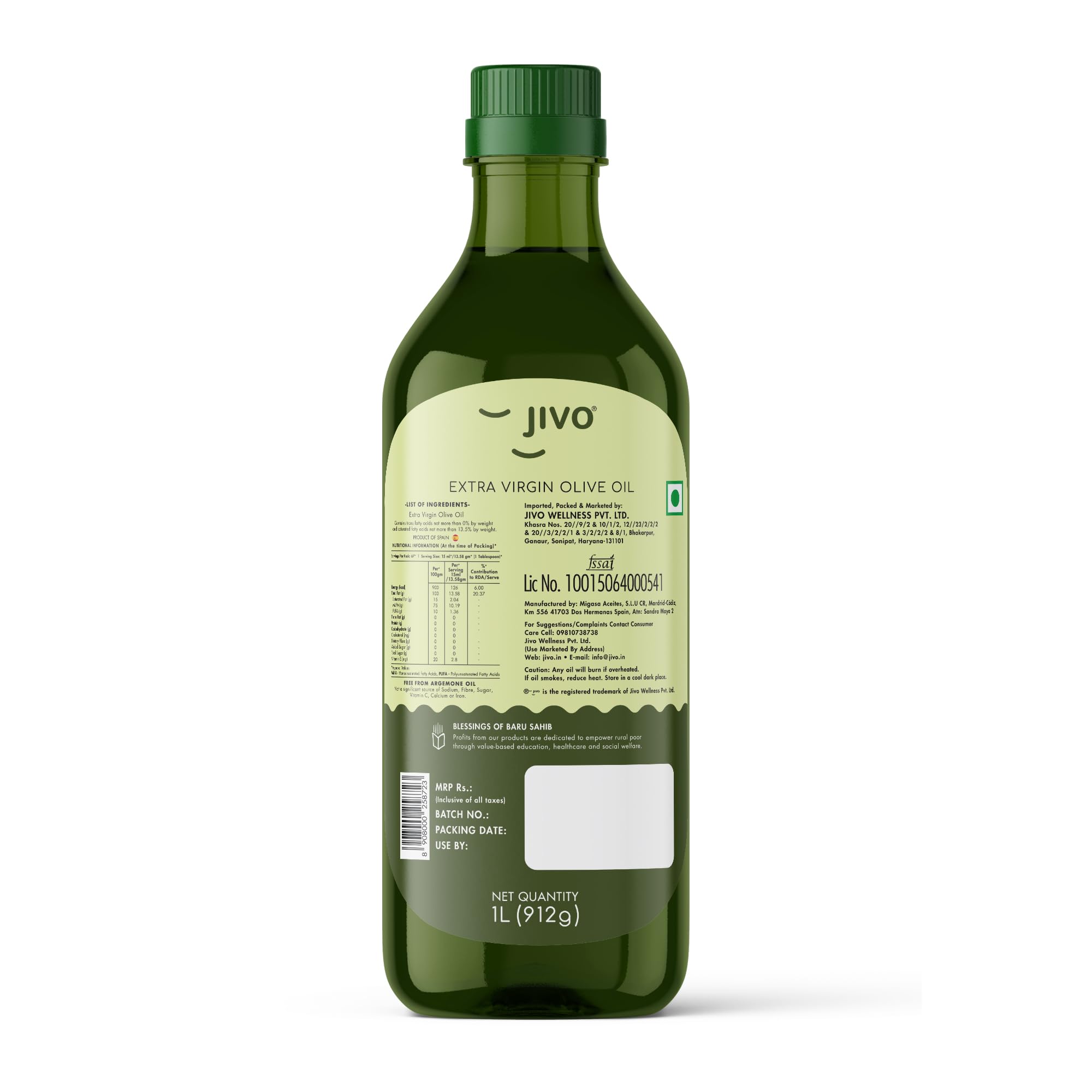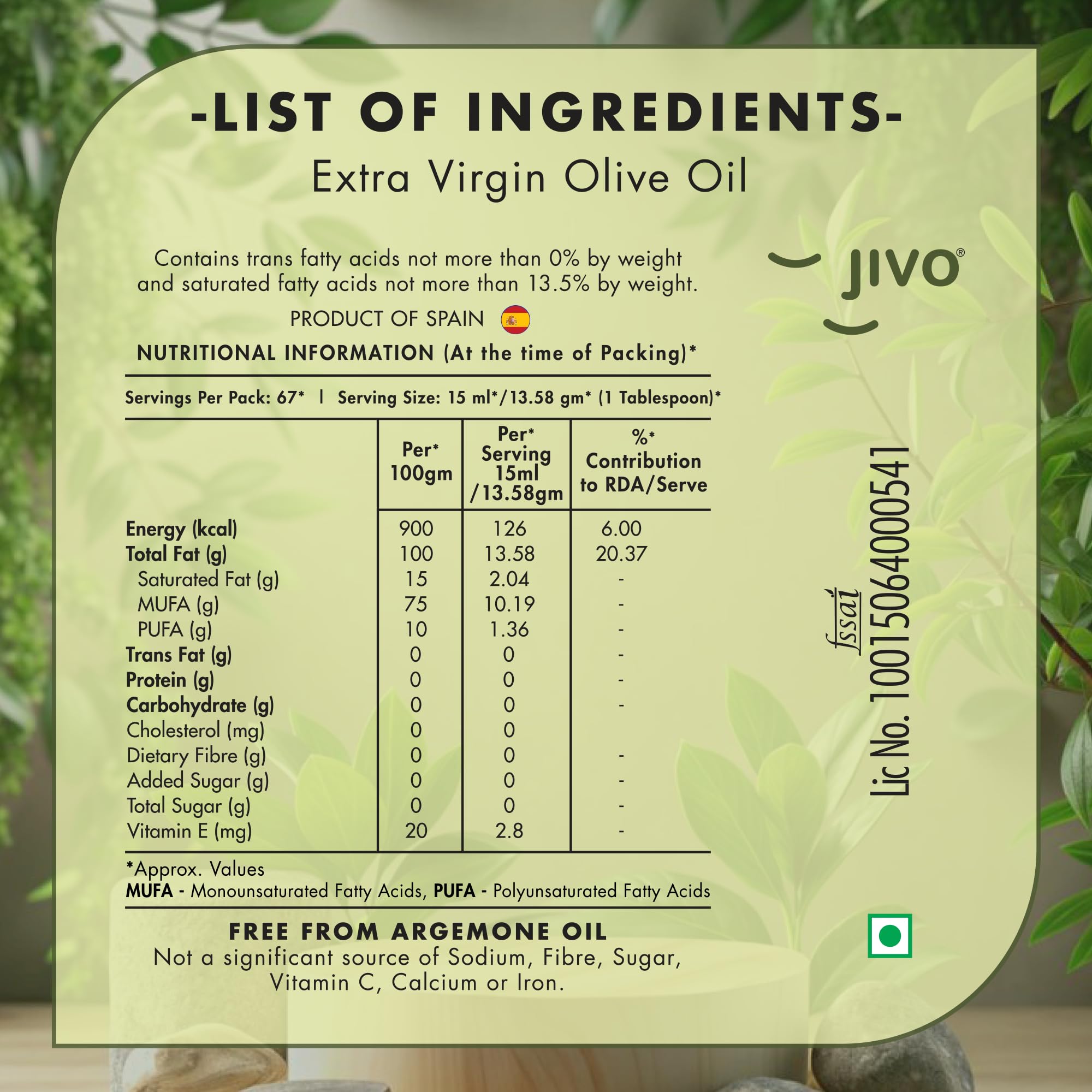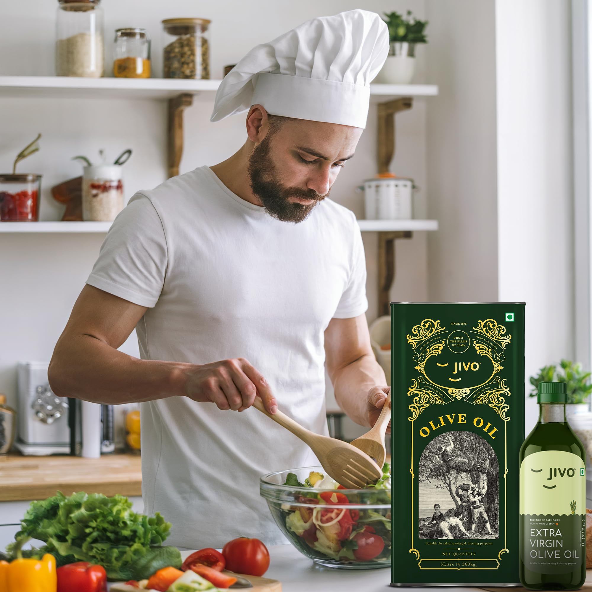 Jivo Extra Virgin Olive Oil 1 litre | Contains Vitamin E | Low in Saturated Fat | Natural Cooking Oil for Dressings Salad and Soups Dips & Marinades [Pack of 1 (1L Pet Bottle)]