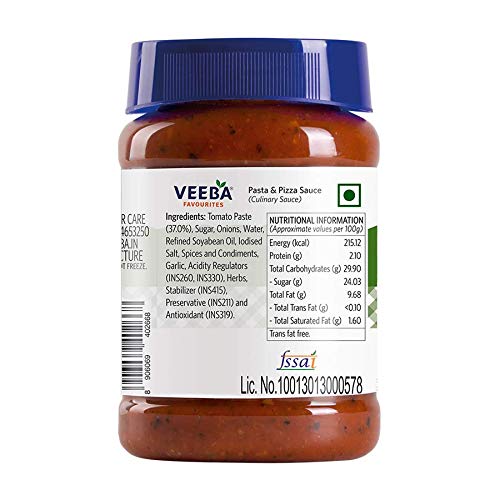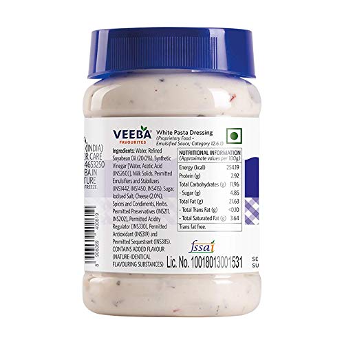 VEEBA Pasta & Pizza Sauce, 280 G & White Pasta Dressing, 250 Gm (Pack of 2)