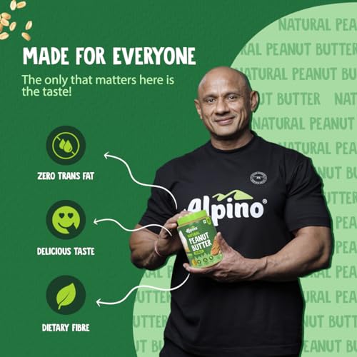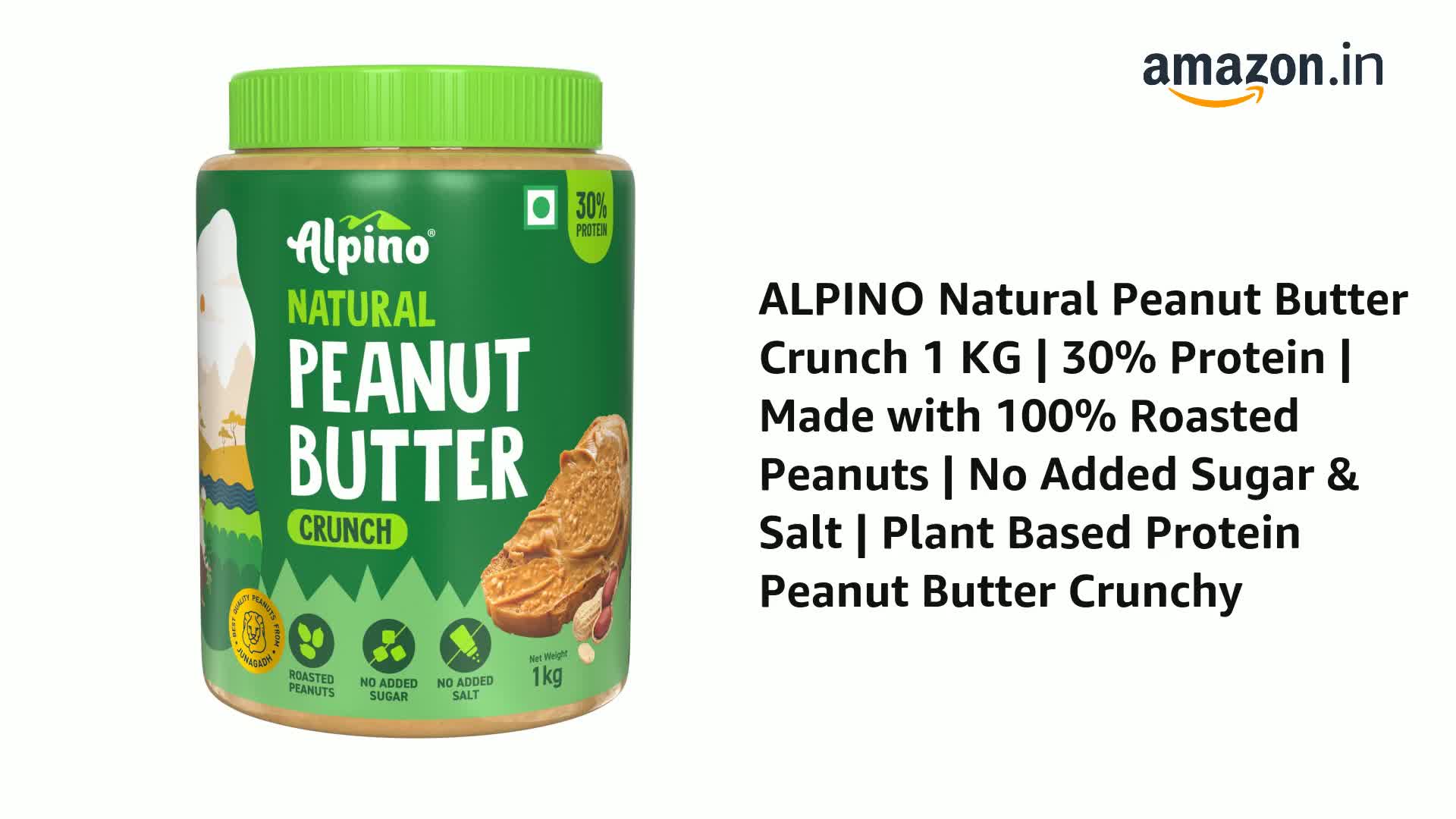 HomeGroceryCookingNatural SugarAlpino Natural Peanut Butter Crunch 1 KG | Unsweetened | 30% High Protein| Made with 100% Roasted Peanuts | No Added Sugar or Salt | No Hydrogenated Oils | Non GMO | Gluten Free | Vegan
