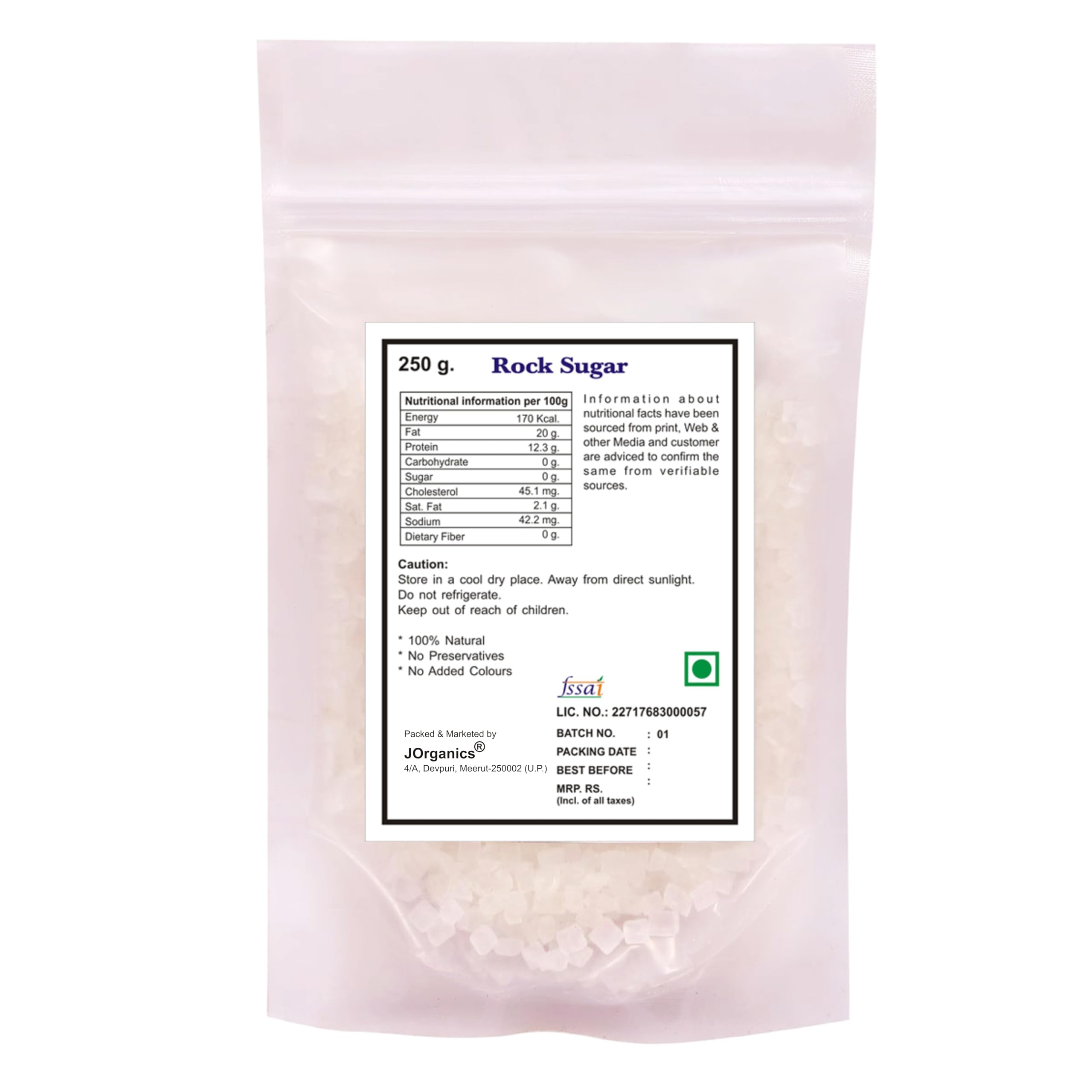 JOrganics Rock Sugar (Mishri) 250g Sugar Mishri | Pure Rock Crystals | Natural And Organically Made | Kallusakkare