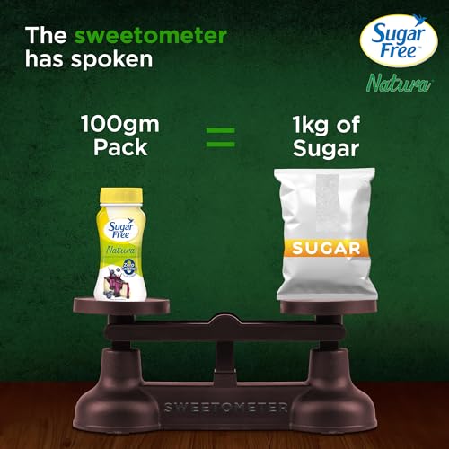 HomeGroceryCookingNatural SugarSugar Free Natura, 100g, Jar (Pack of 2) | Equivalent to Sweetness from 1Kg Sugar |100% Safe| Scientifically Proven & Tested|Sweet like Sugar but with zero calories|