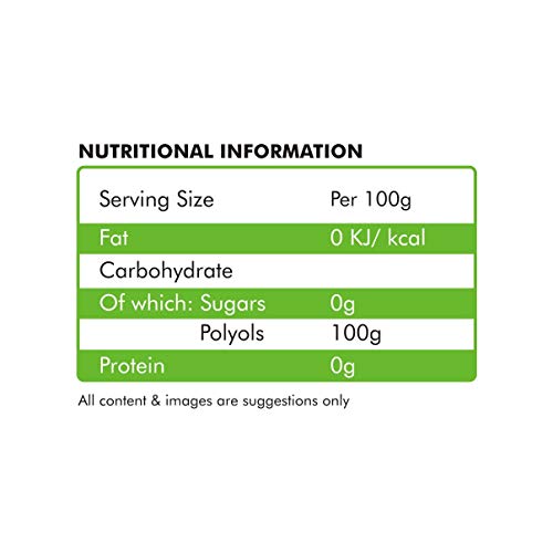 Special Feature: 100% Natural Sweetener 100% Water Soluble 0 Calories & 0 Carbs No added flavours chemicals or additives As the product is made from herbs it won't get the same sweetness as sugar